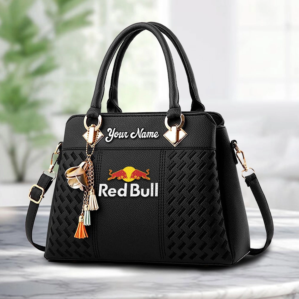 Red Bull Logo Personalized PU Leather Handbag Custom Name For Women