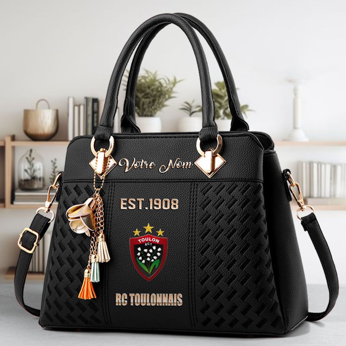 RC Toulonnais Crossbody Zip Handbag With Tassel Custom Name For Women