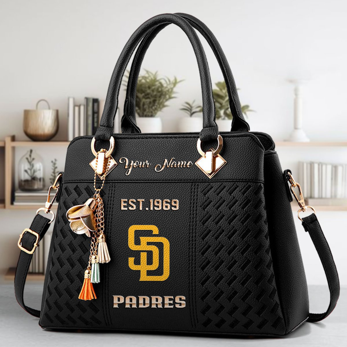 San Diego Padres Logo Crossbody Zip Hand Bag With Tassel Custom Name For Women