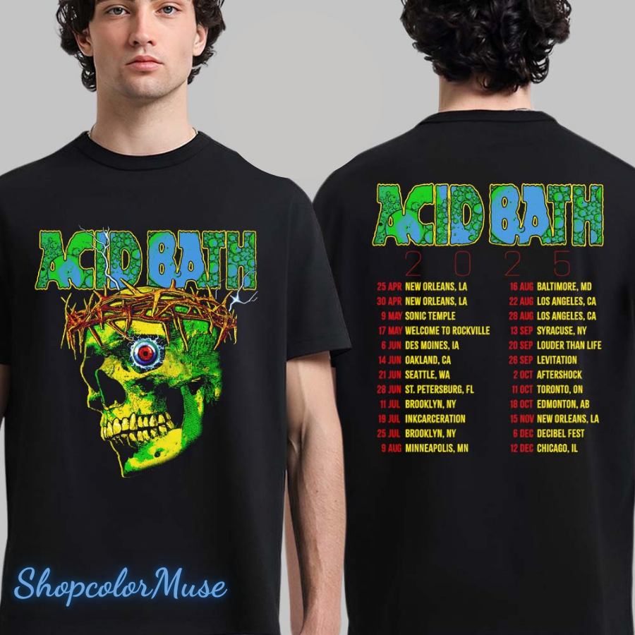 Acid Bath 2025 North American Tour Skull Art With Dates Back Two Sided T-Shirt