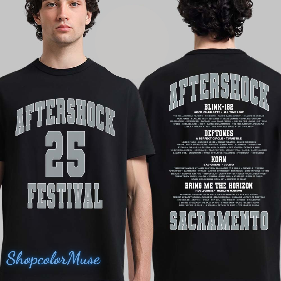 Aftershock Festival 2025 Sacramento California Athletics With Lineup Back Two Sided T-Shirt