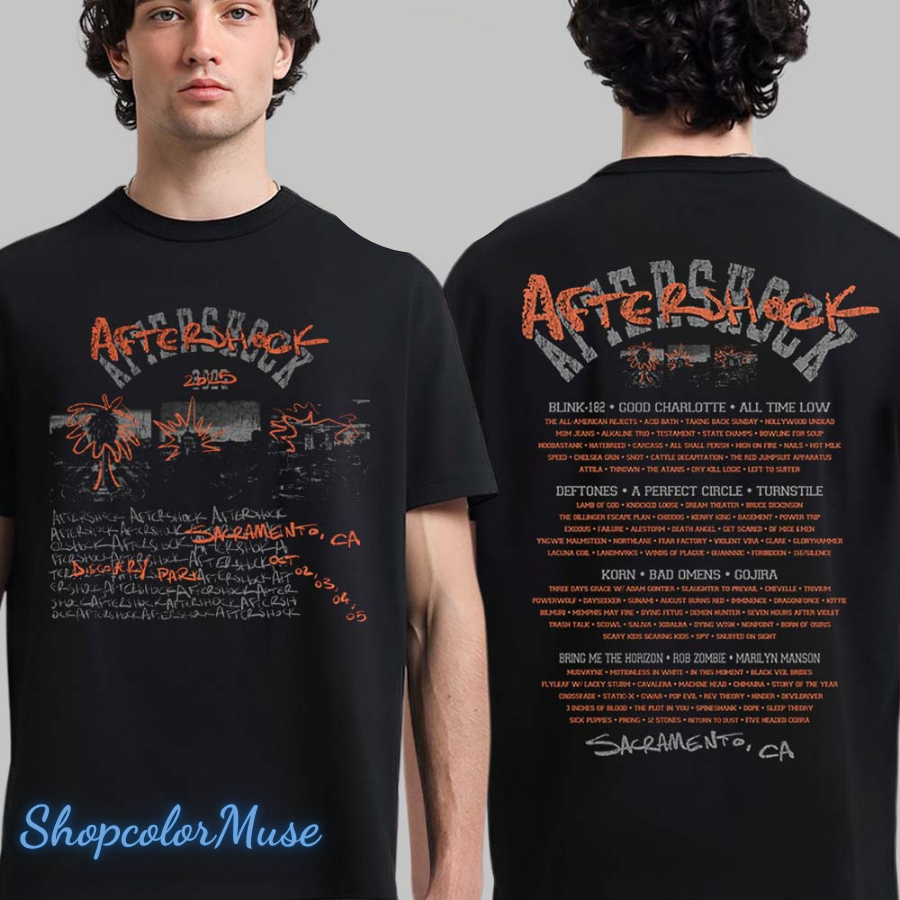Aftershock Festival 2025 Sacramento California Capital Of Rock With Lineup Back Two Sided T-Shirt