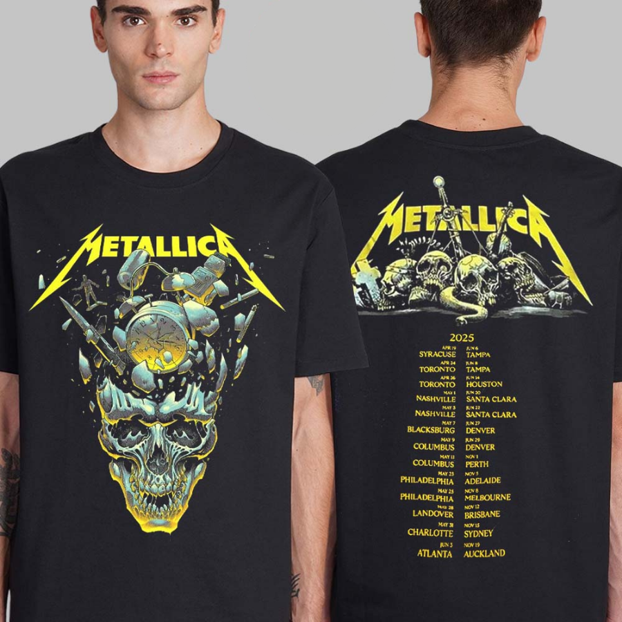 Metallica M72 World Tour 2025 Merch Tour Dates Shattered Skull Two Sided Unisex T-Shirt