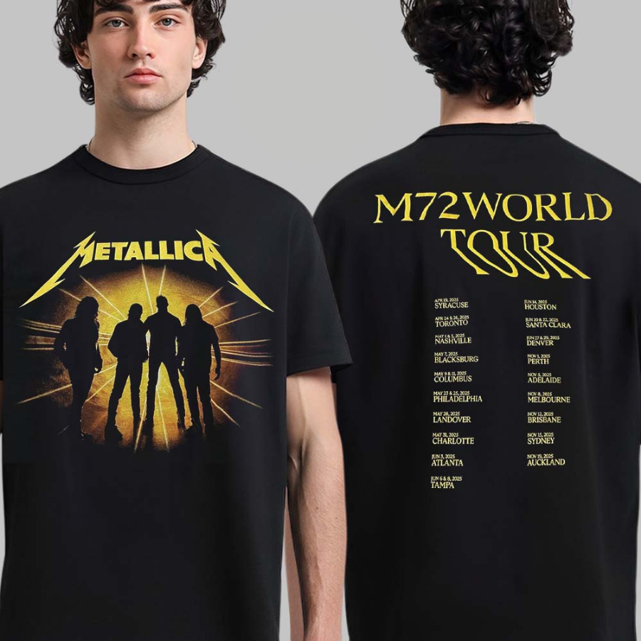 Metallica M72 World Tour 2025 Merch Tee Album Cover With Tour Dates Two Sided Unisex T-Shirt