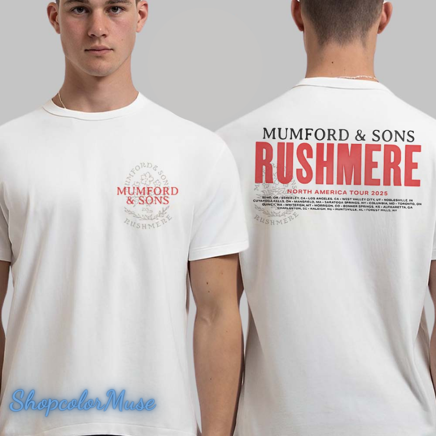 Mumford And Sons Rushmere North America Tour 2025 Bone Stamp Print Two Sided T-Shirt