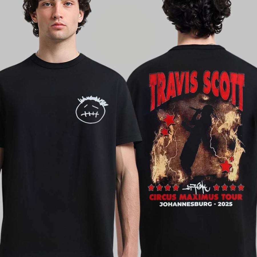 Travis Scott Circus Maximus Tour 2025 Johannesburg Exclusive Merch Two Sided T-Shirt