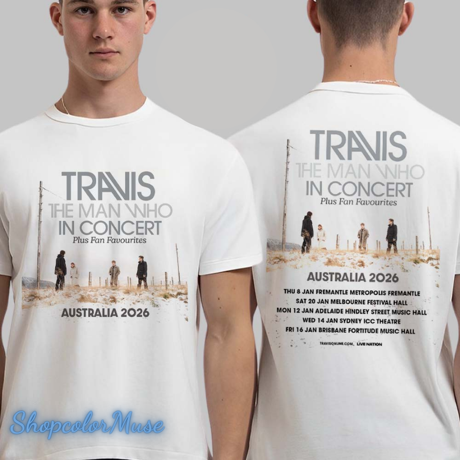 Travis Band The Man Who In Concert Australia 2026 Schedule Dates Two Sided T-Shirt
