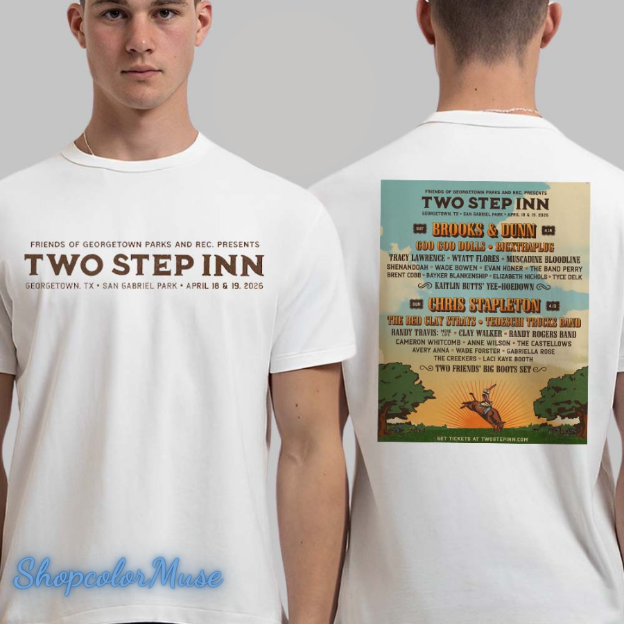 Two Step Inn Festival 2026 Lineup In Georgetown Texas At San Gabriel Park On April 18 And 19 2026 Two Sided T-Shirt