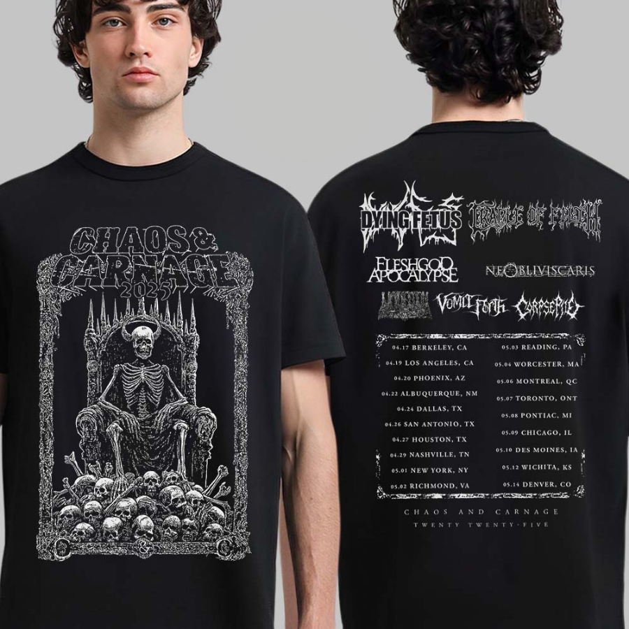 Chaos And Carnage 2025 Tour Merch Red Skull King Two Sided T-Shirt