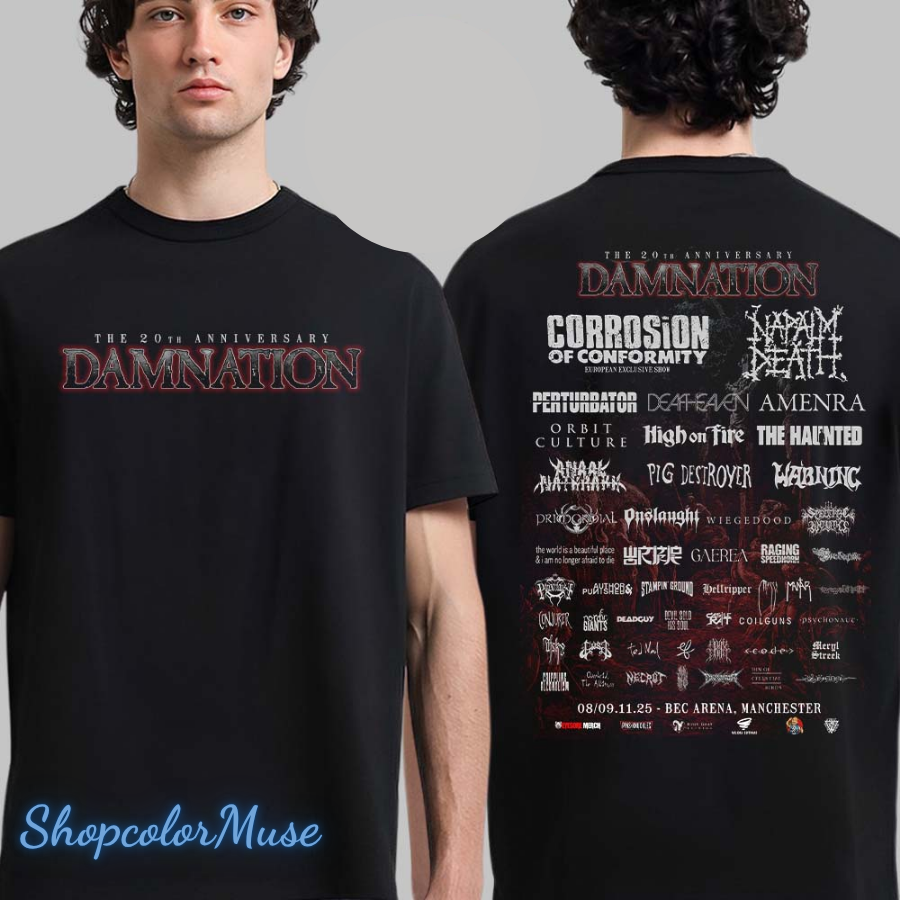 Damnation Festival 2025 Official Lineup In Manchester Uk At Bec Arena On November 8 2025 Two Sided T-Shirt