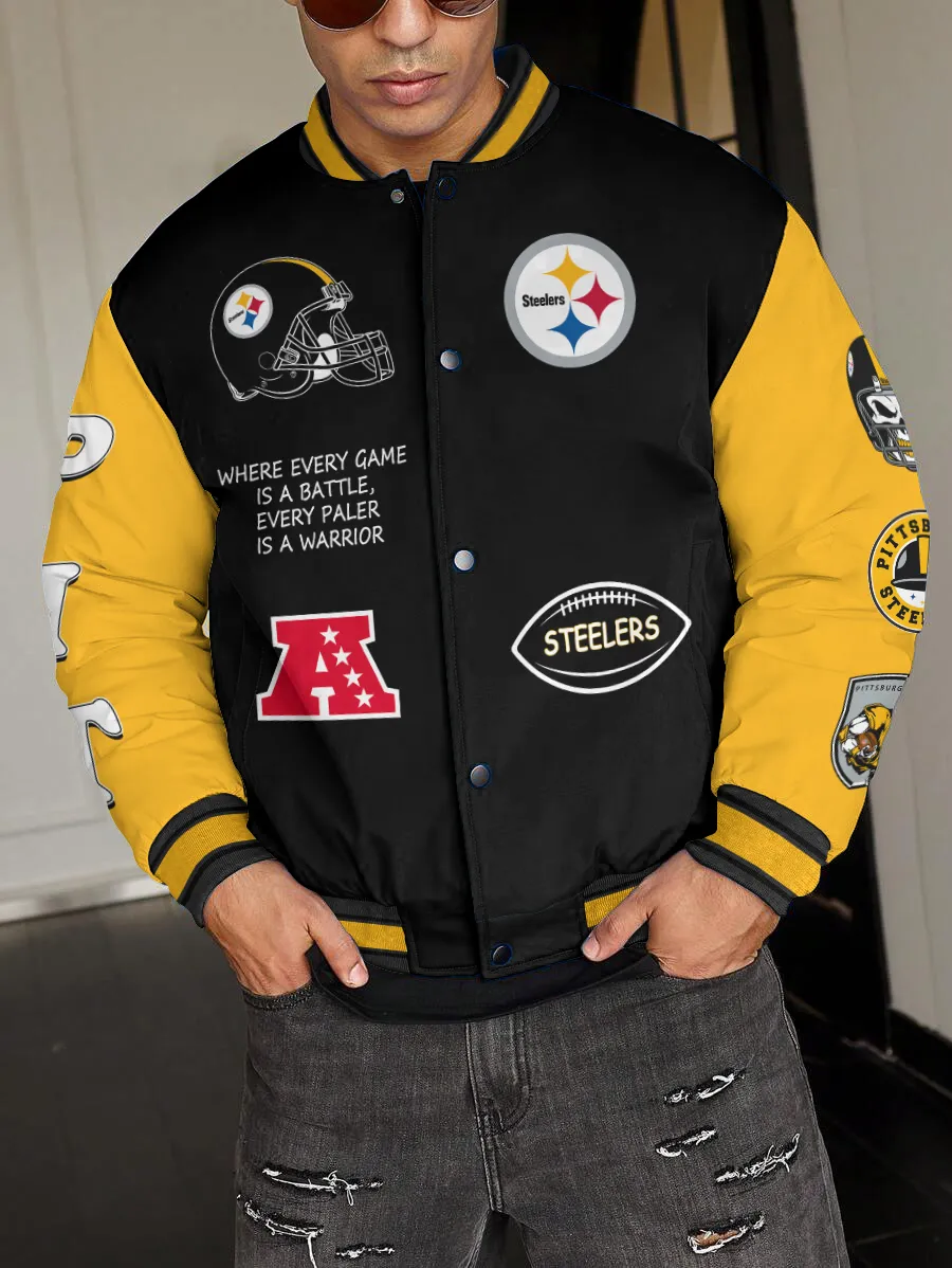 Pittsburgh Steelers NFL Feel The Power Baseball Varsity Jacket