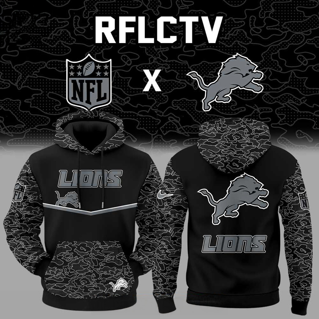 Detroit Lions X Rflctv Black Collection Hoodie Detroit Lions Merch Presents For Football Fans