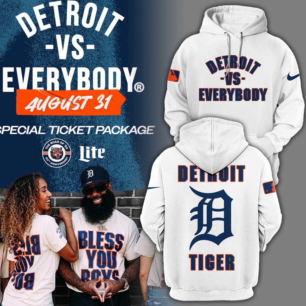 Detroit Tigers MLB 2024 Detroit Vs Everybody White Hoodie Cool Baseball