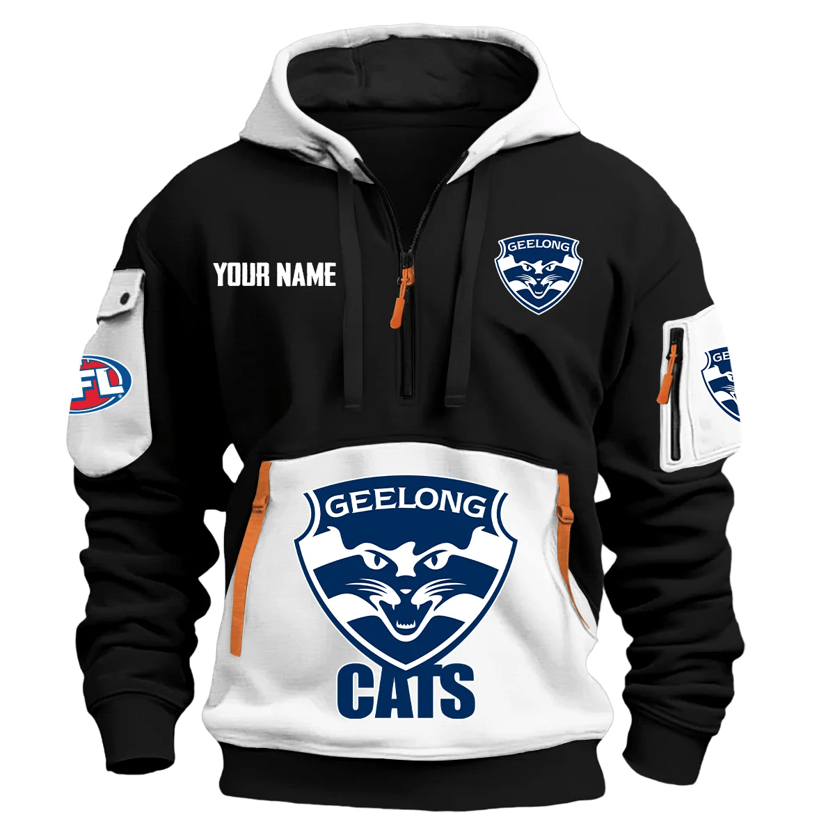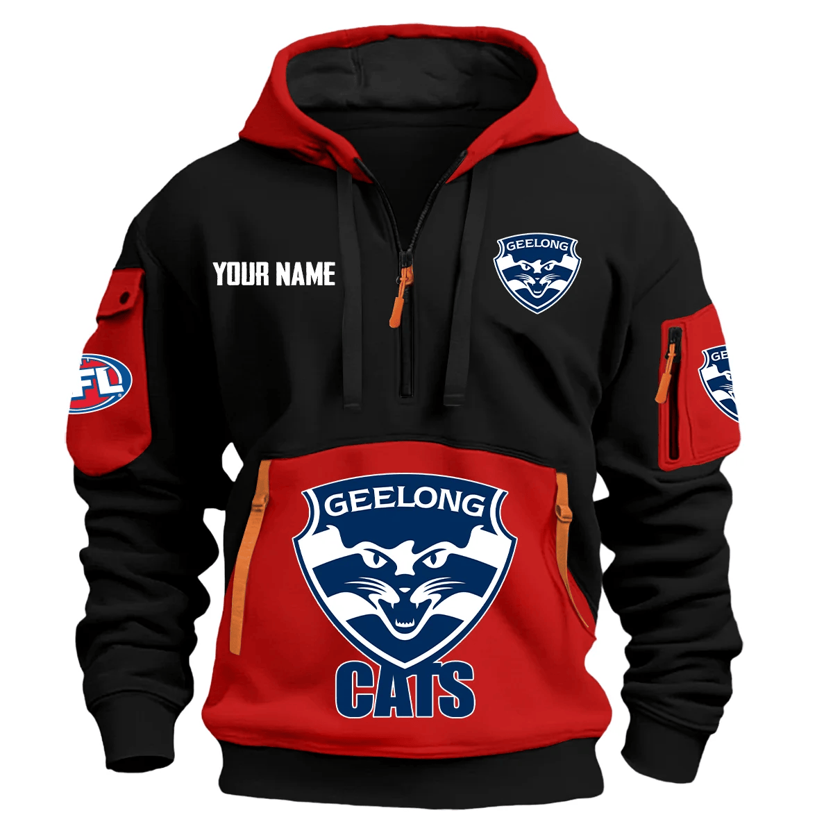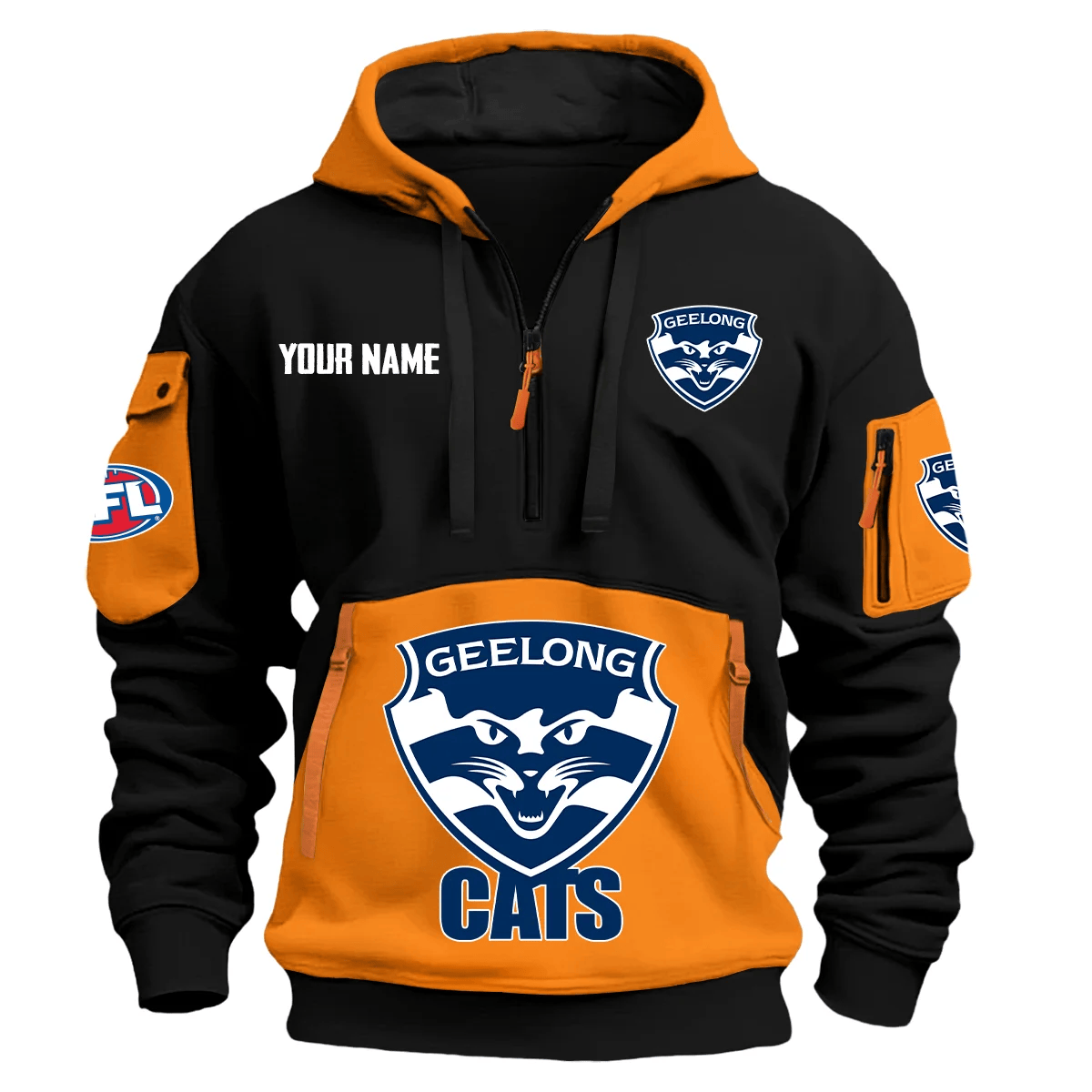 Geelong Cats Australian Football League Exclusive Logo Hoodie Half Zipper Orange
