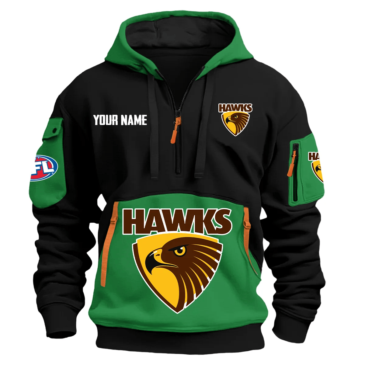 Hawthorn Hawks Australian Football League Exclusive Logo Hoodie Half Zipper Green