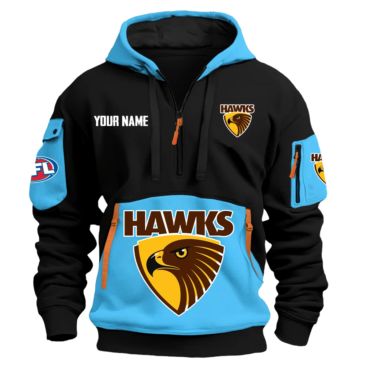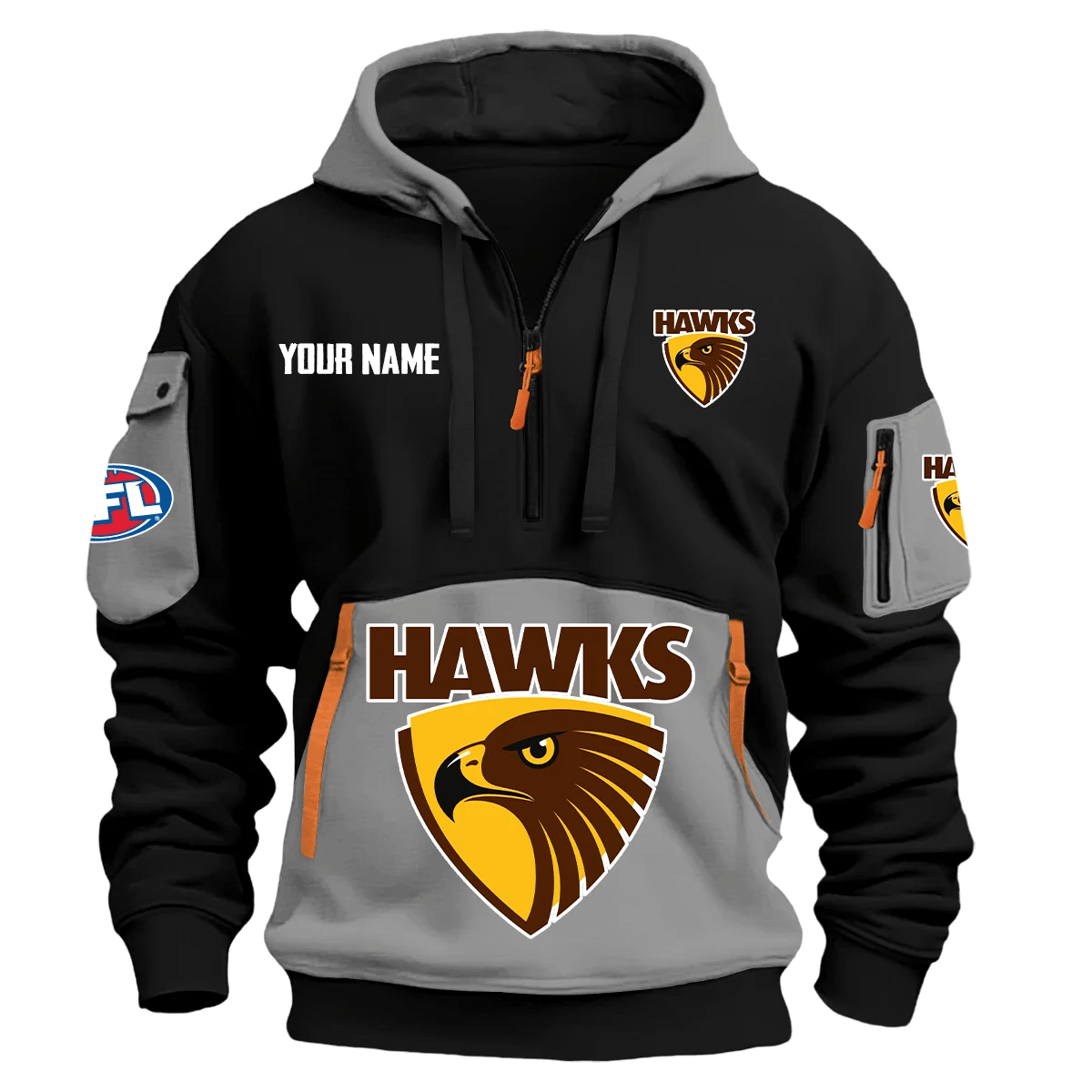 Hawthorn Hawks Australian Football League Exclusive Logo Hoodie Half Zipper Orange