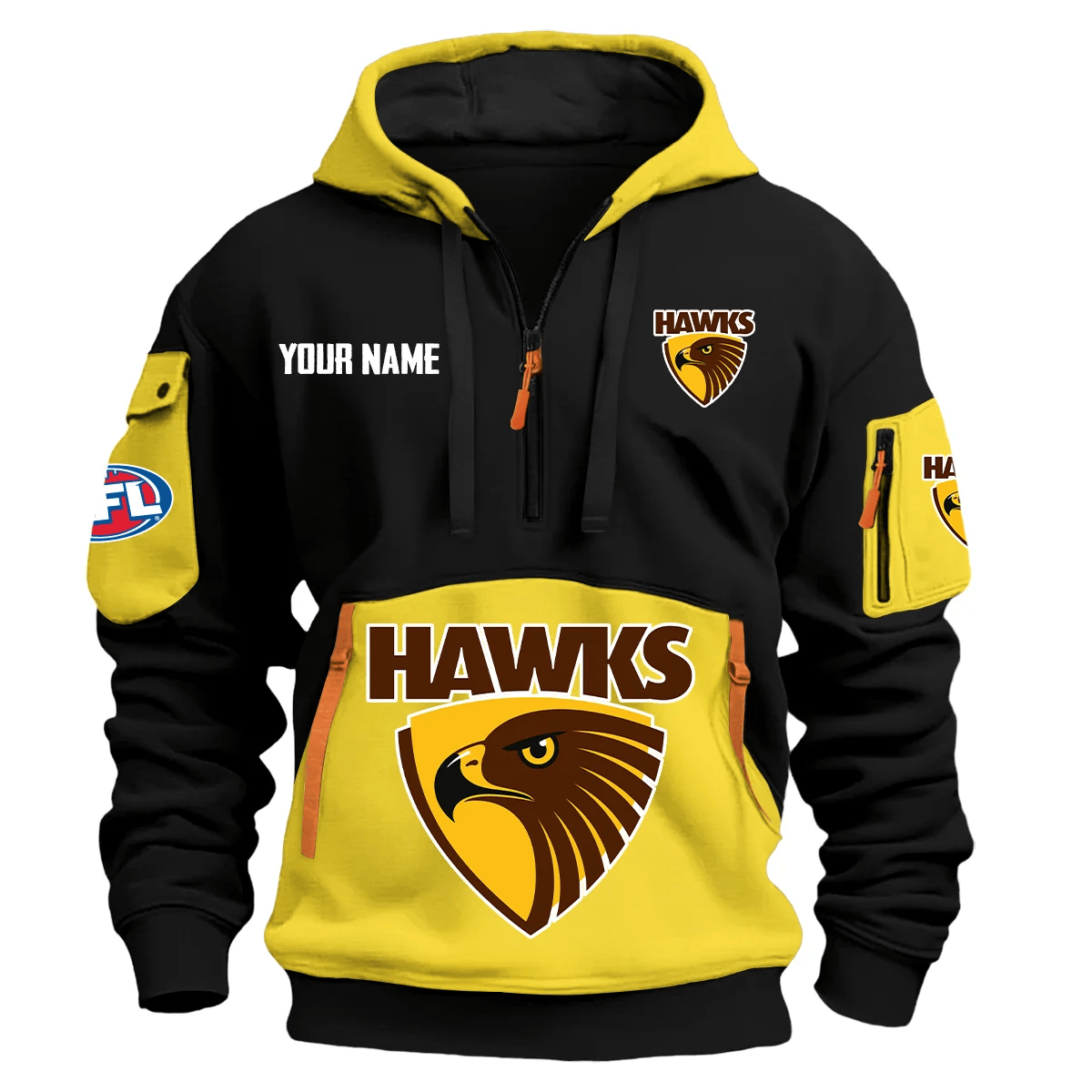 Hawthorn Hawks Australian Football League Exclusive Logo Hoodie Half Zipper Yellow