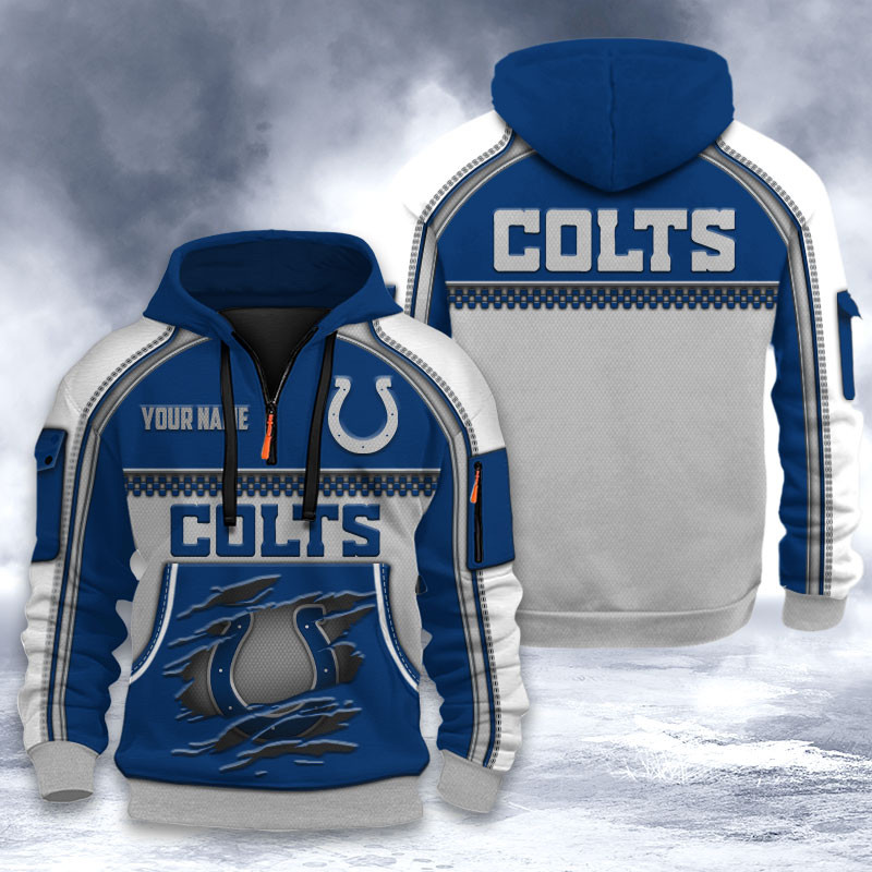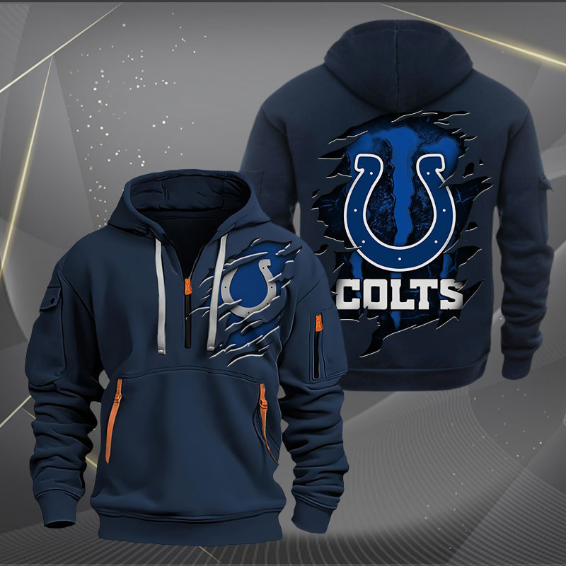 Indianapolis Colts Logo 3D Half-zip Hoodie For Men