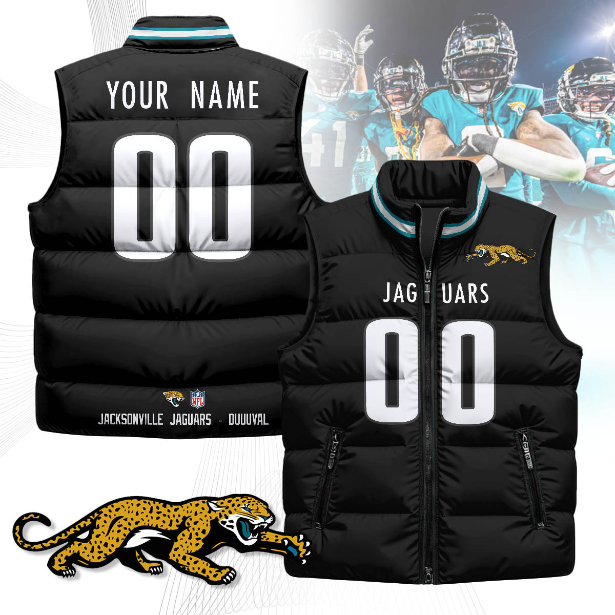 Jacksonville Jaguars Custom Unisex Puffer Vest Custom Name And Number