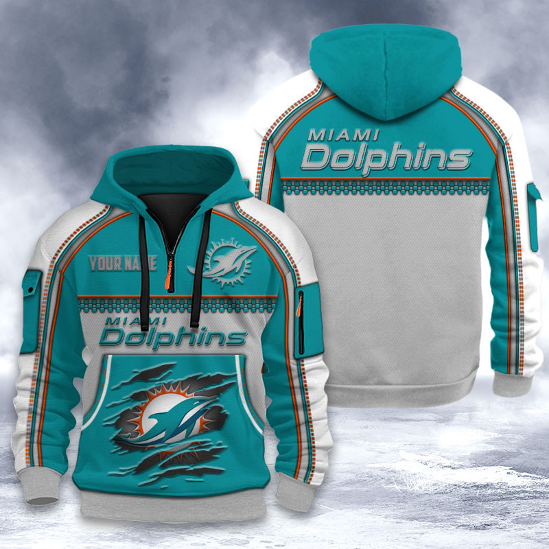 Miami Dolphins DMHT2532 3D College Men Quarter Zip Hoodie