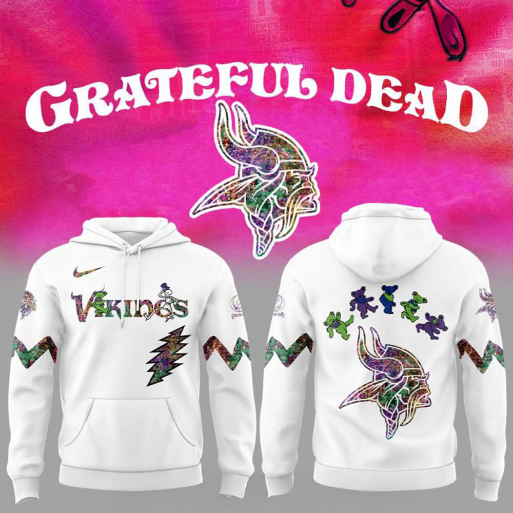 Minnesota Vikings Grateful Dead Night Special White Hoodie Grateful Dead Merch Fathers Day Gift