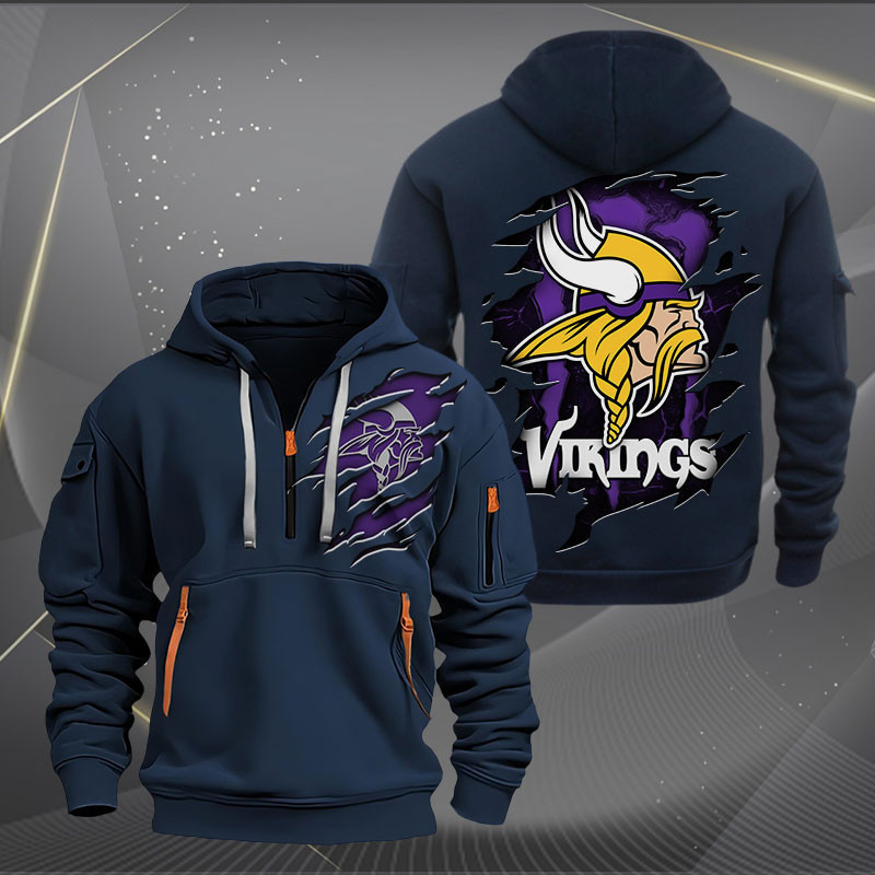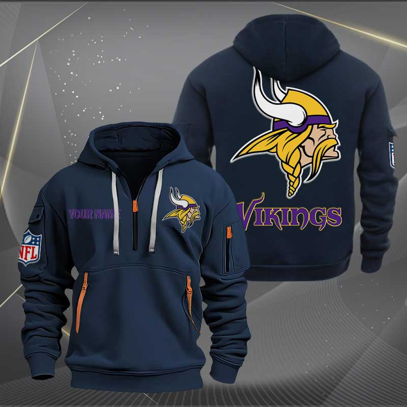 Minnesota Vikings Logo Quarter Zip Hoodie Custom Collection