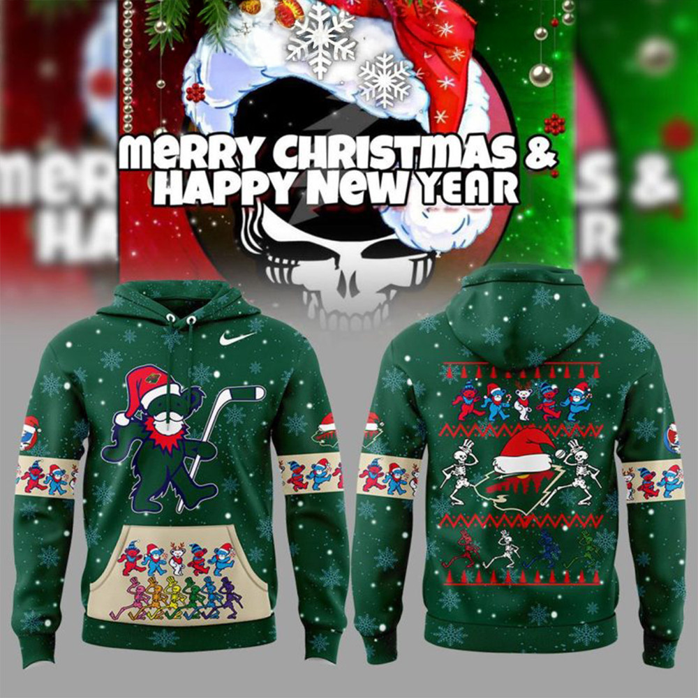 Minnesota Wild Grateful Dead 2025 Christmas Happy New Year Hoodie Presents For Hockey Fans