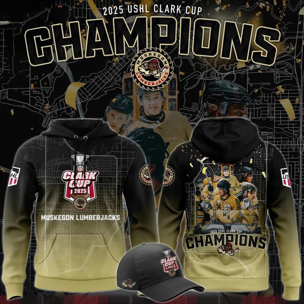 Muskegon Lumberjacks 2025 USHL Clark Cup Champions Hoodie Muskegon Lumberjacks Merch