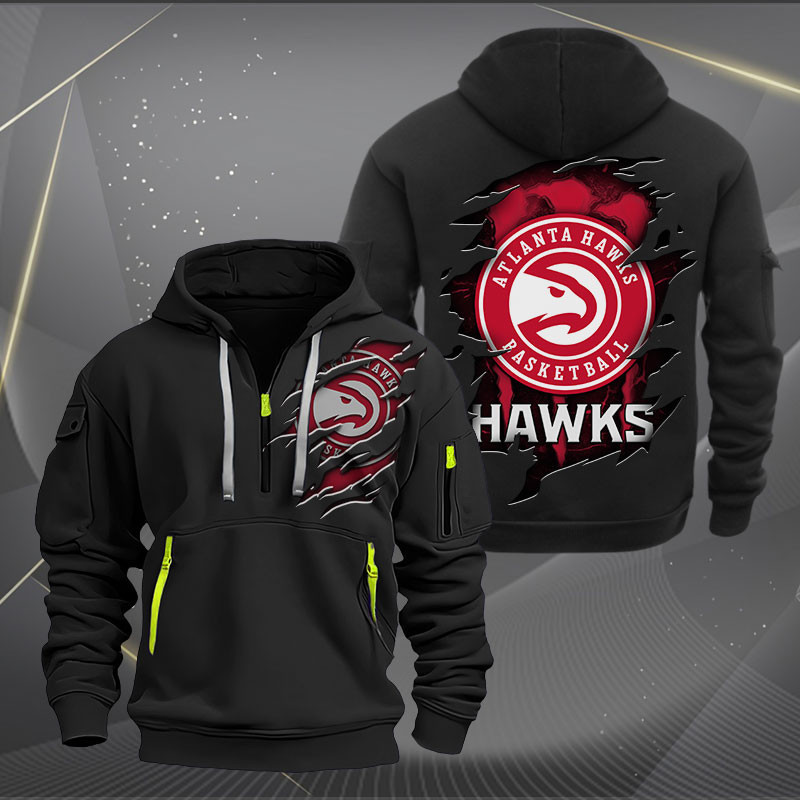 NBA Atlanta Hawks Logo Sport 2025 Quater Zip Hoodie Men