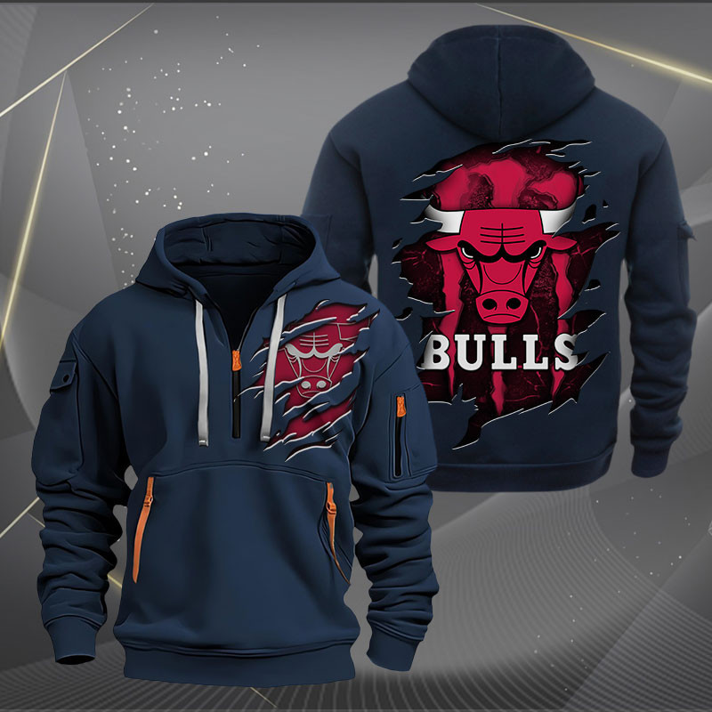 NBA Chicago Bulls Logo Sport 2025 Quater Zip Hoodie Men