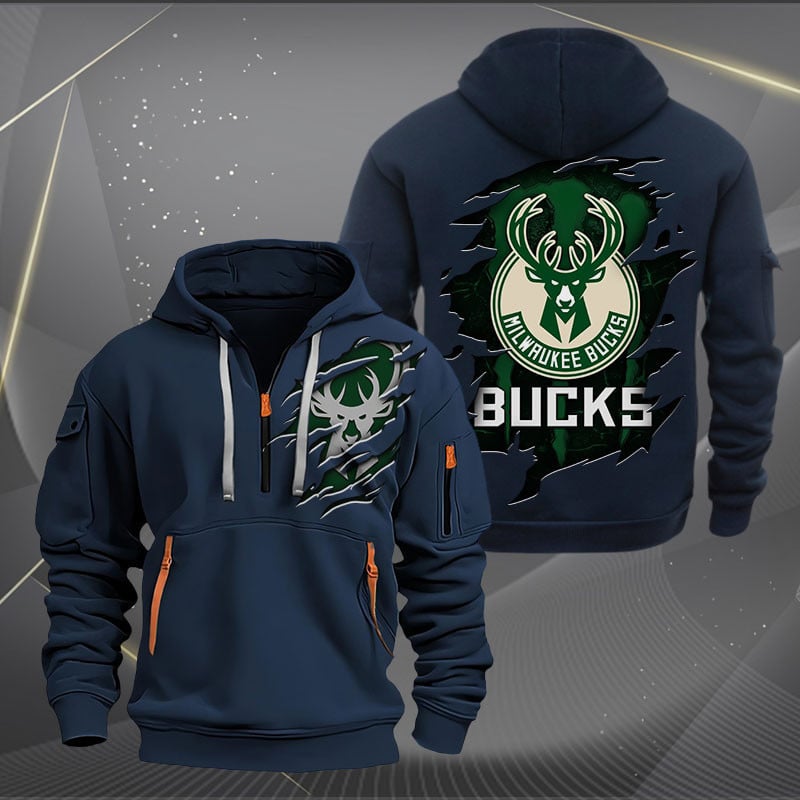 NBA Milwaukee Bucks Logo Sport 2025 Quater Zip Hoodie Men
