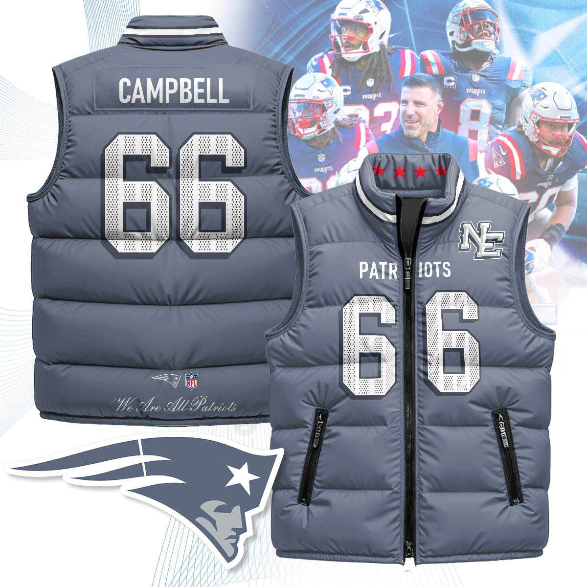 New England Patriots Unisex Puffer Vest Custom Name And Number