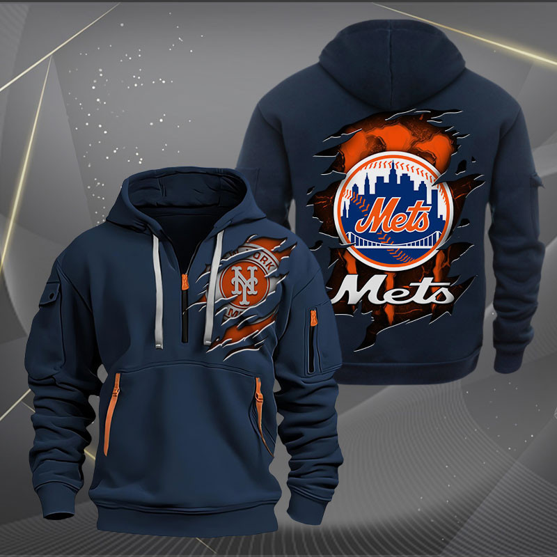 New York Mets MLB Sport Logo Quarter Zip Hoodie