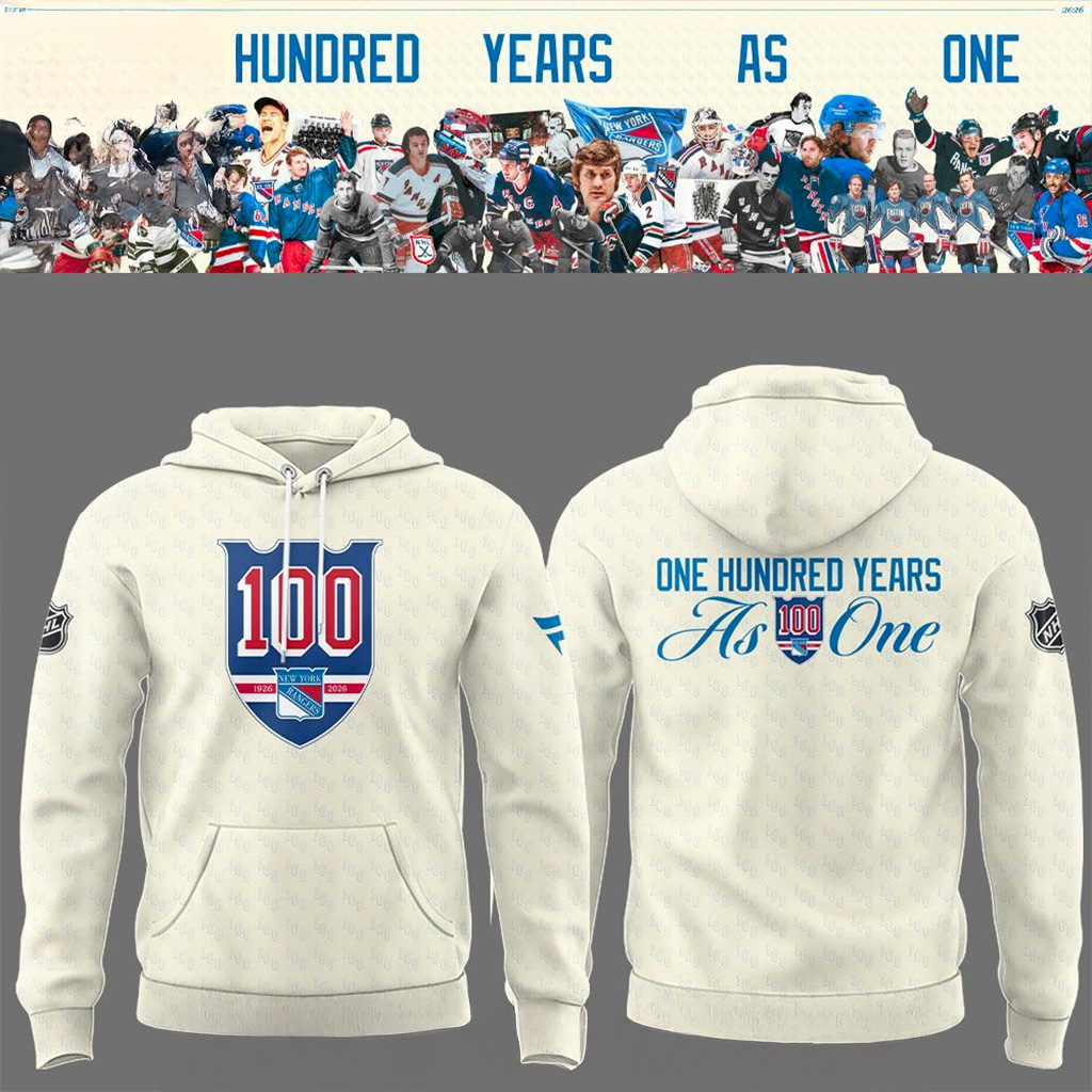 New York Rangers One Hundred Years As One Hoodie Rangers Merch For Hockey Fan