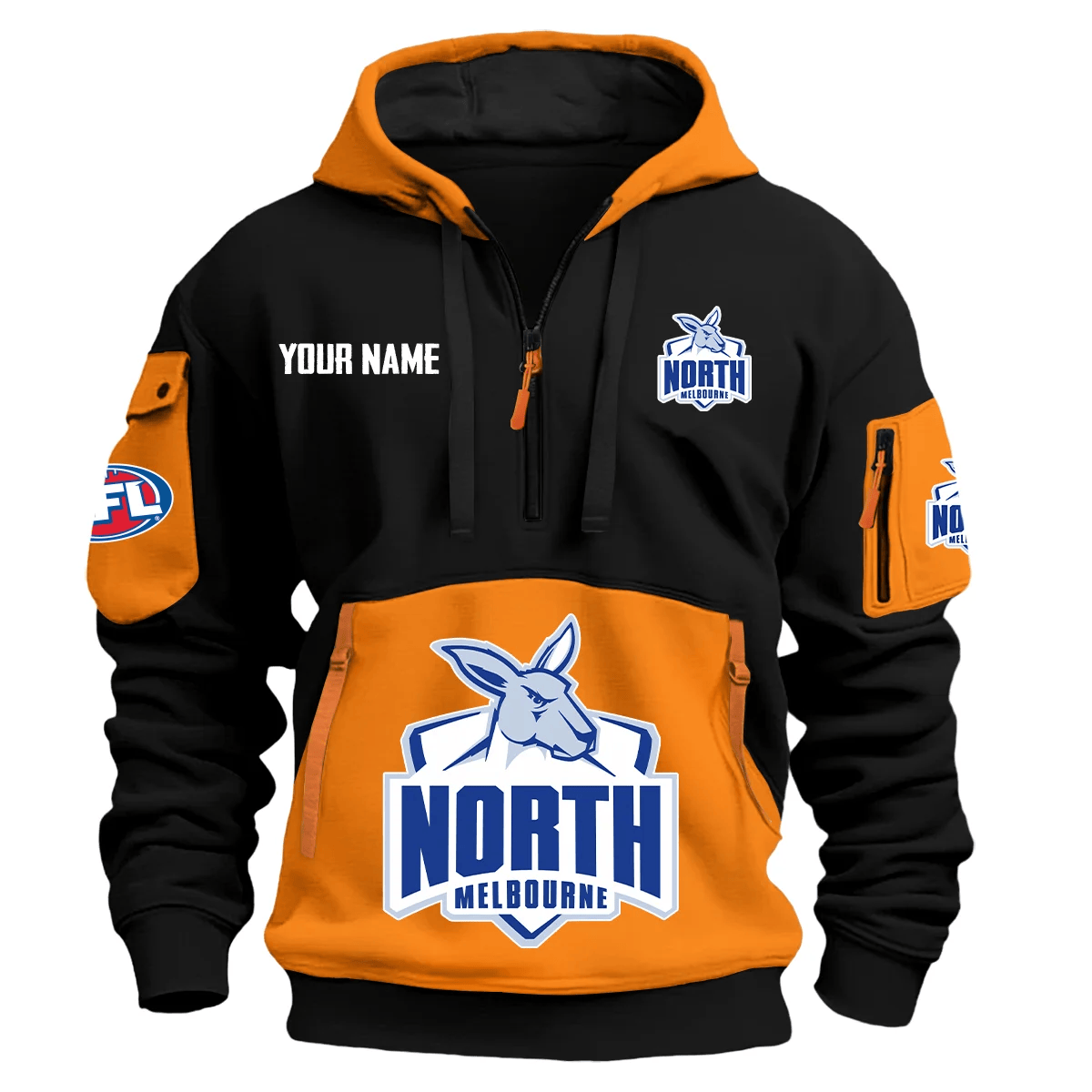 North Melbourne Kangaroos Australian Football League Exclusive Logo Hoodie Half Zipper Orange