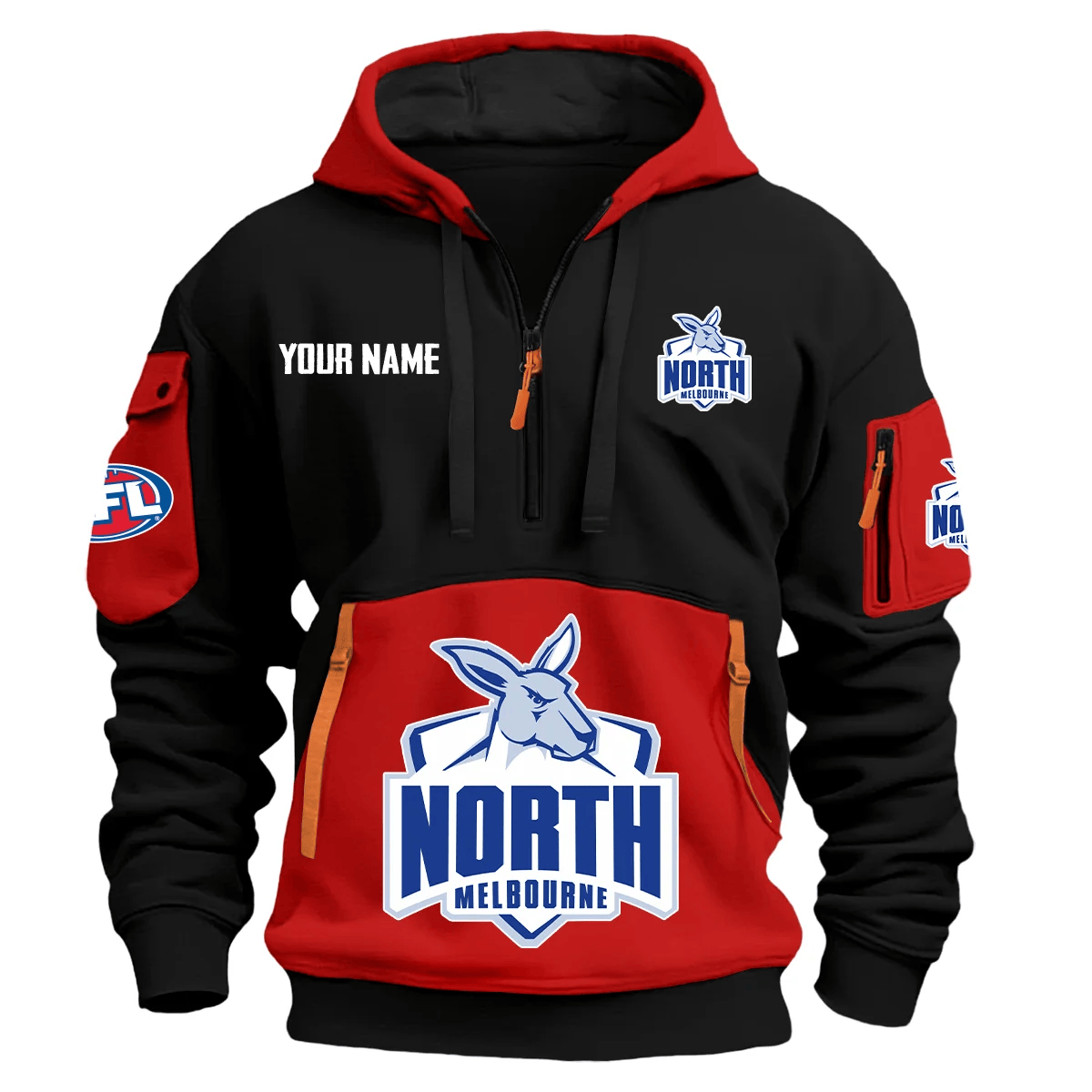 North Melbourne Kangaroos Australian Football League Exclusive Logo Hoodie Half Zipper Style 1