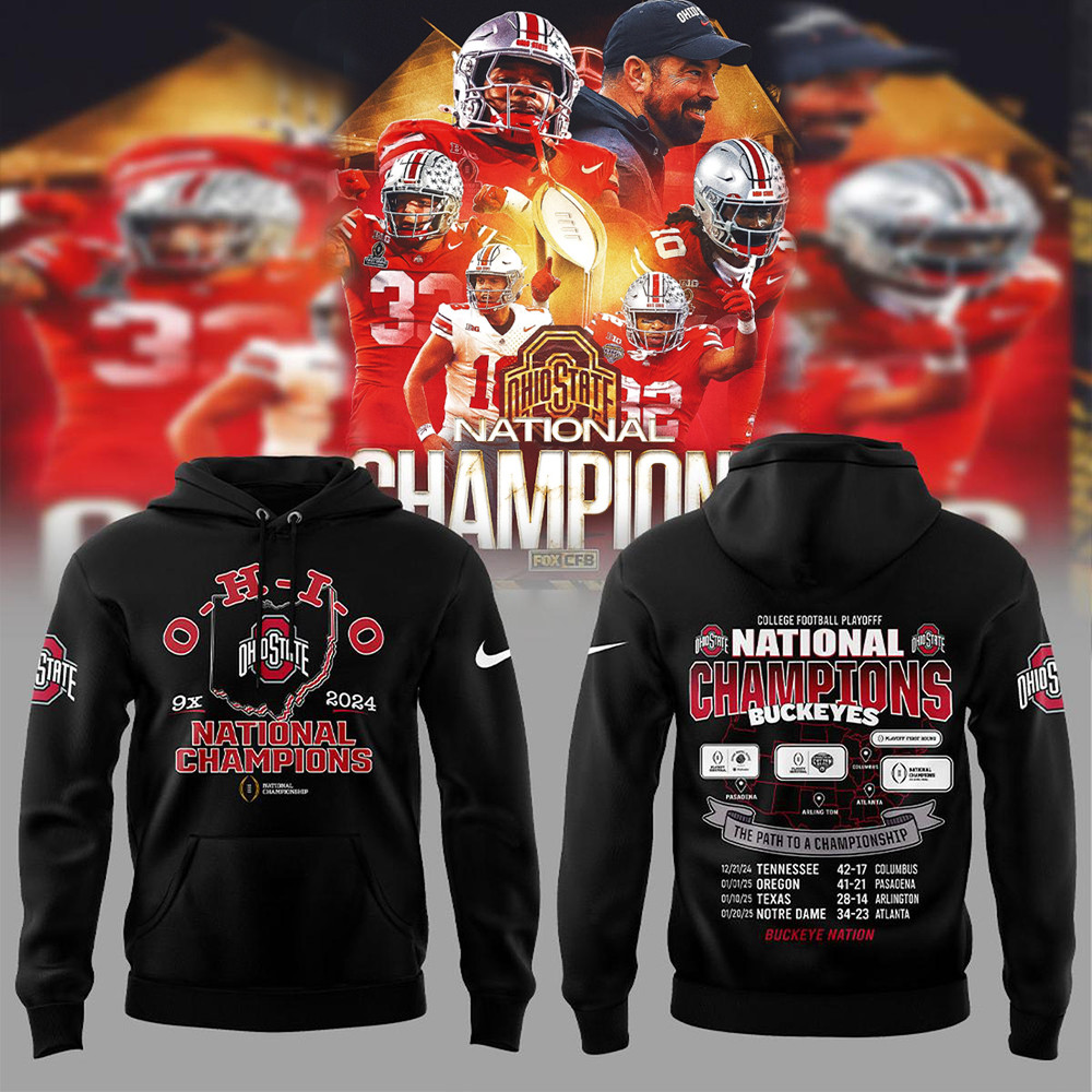 Ohio State Football 2024 College Football Playoff National Champions Black Hoodie Fans
