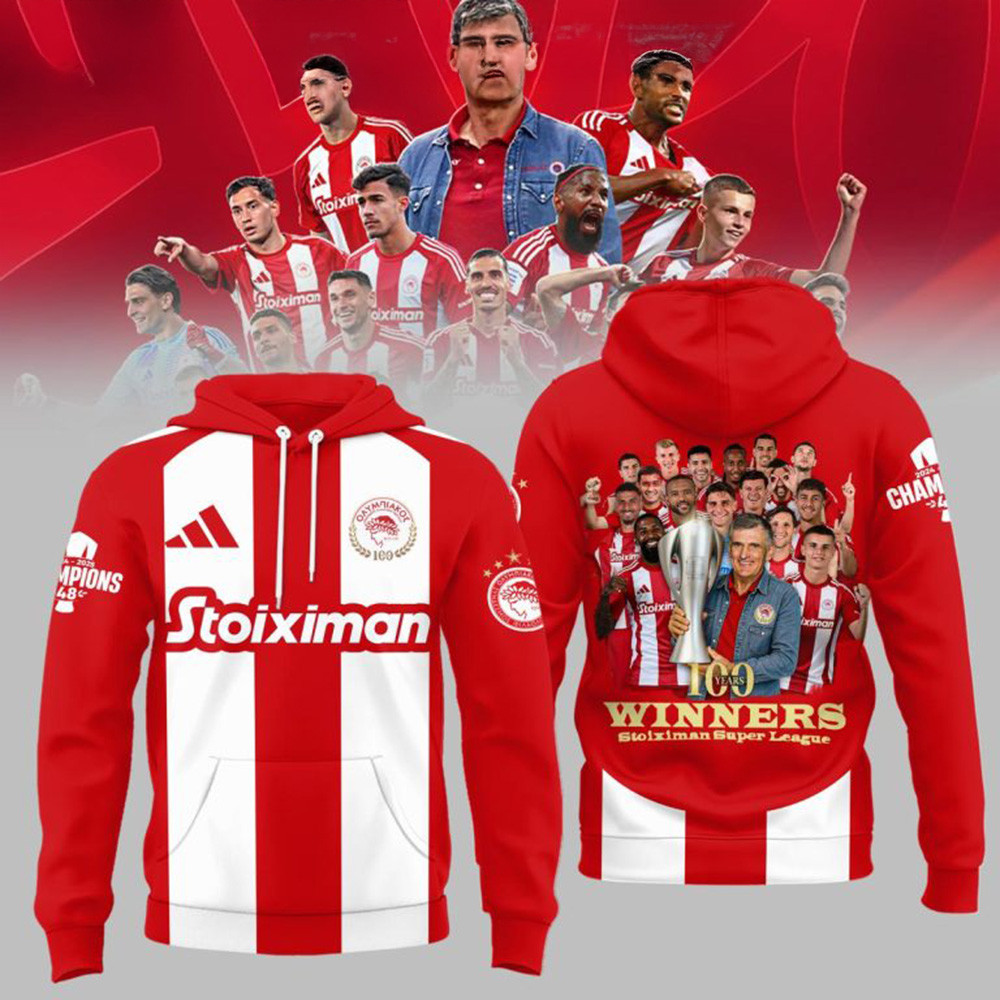 Olympiakos 100 Years Winners Stoiximan Super League Hoodie Olympiakos Merch Cool Gifts For Dad