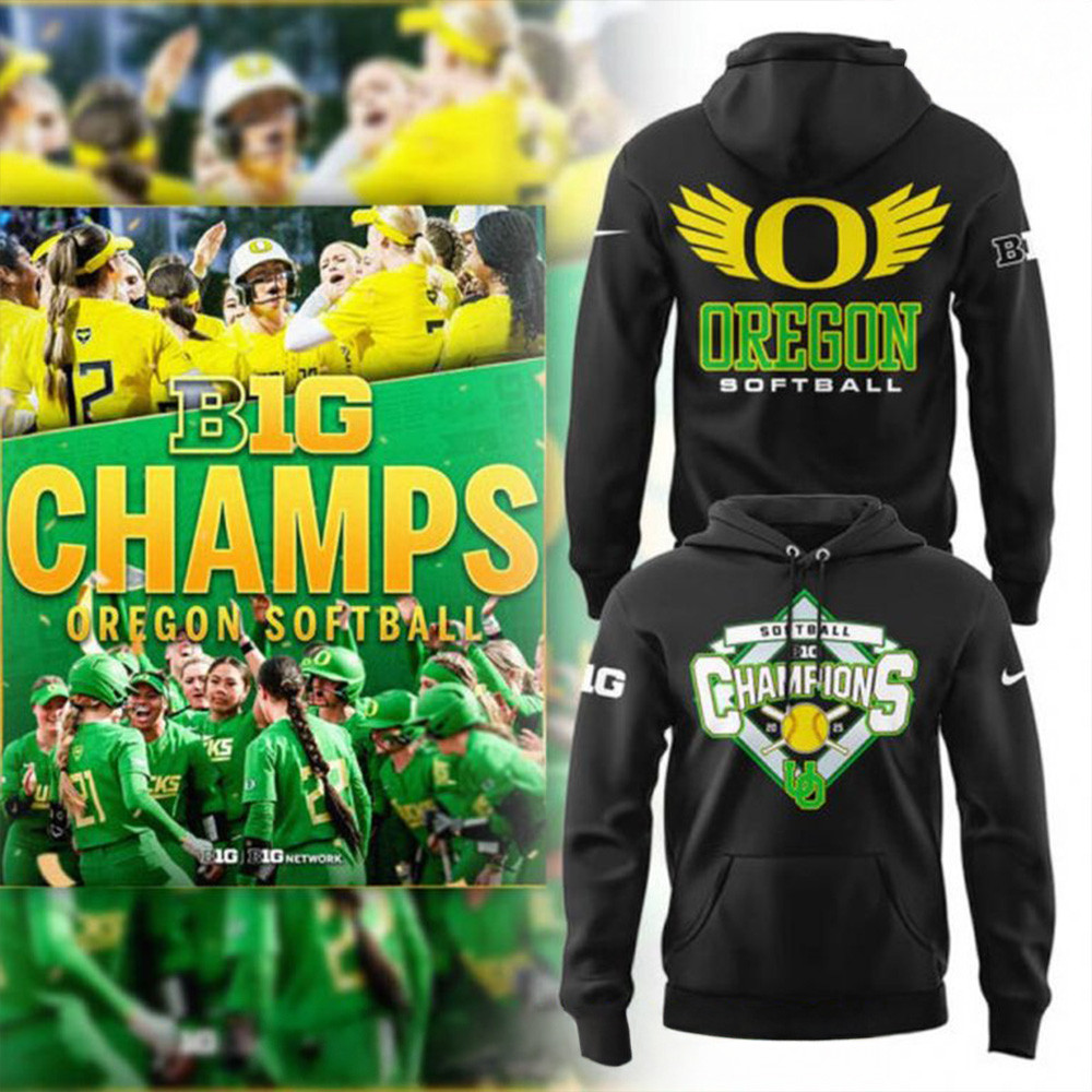 Oregon Softball Big Ten Champions 2025 Black Hoodie Gifts For Softball Fans