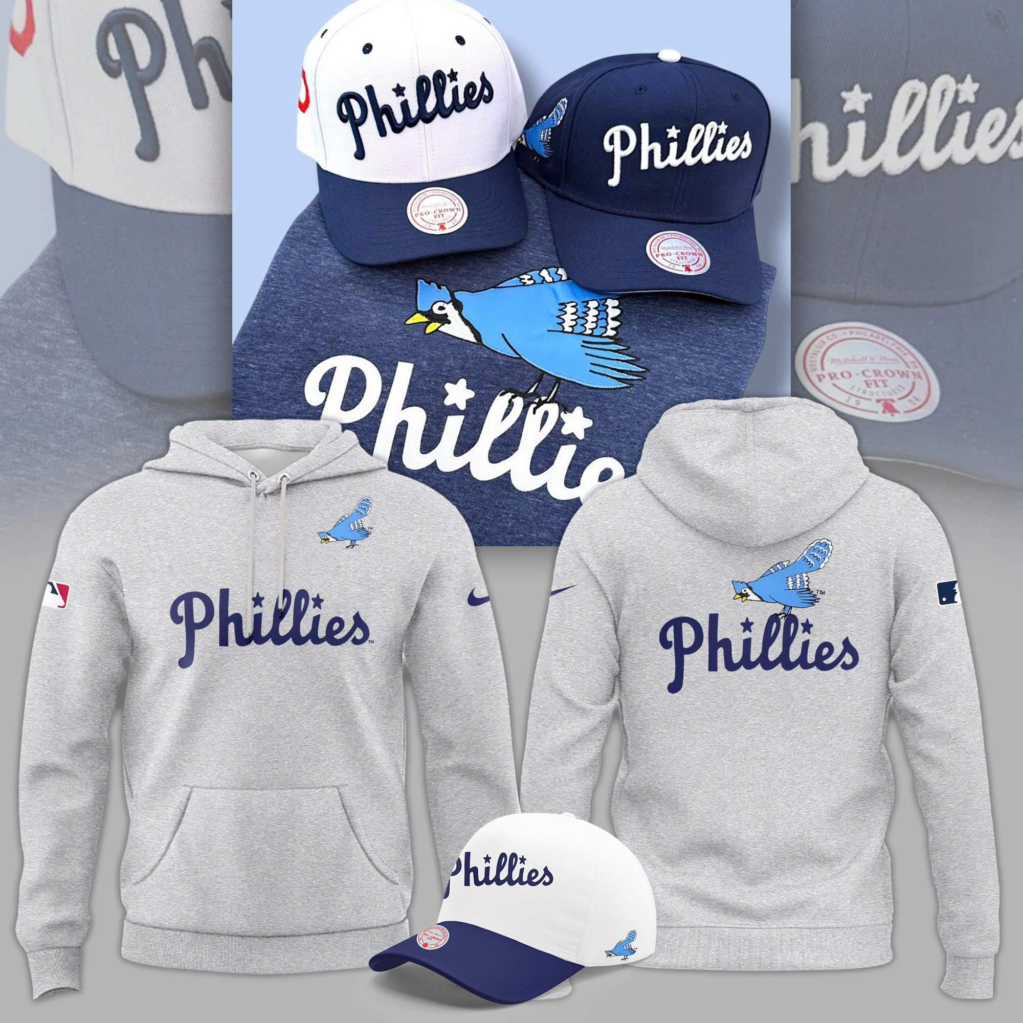 Philadelphia Phillies Grey Blue Jay Logo Hoodie Gifts For Baseball Fans