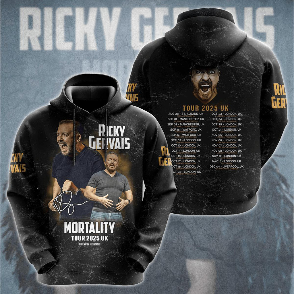 Ricky Gervais Mortality Tour 2025 Hoodie Ricky Gervais Merch For Boyfriend