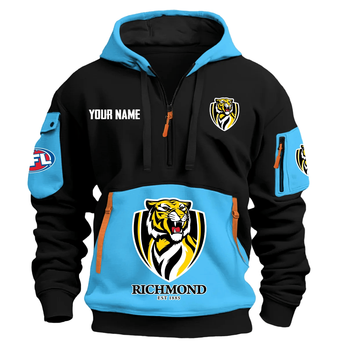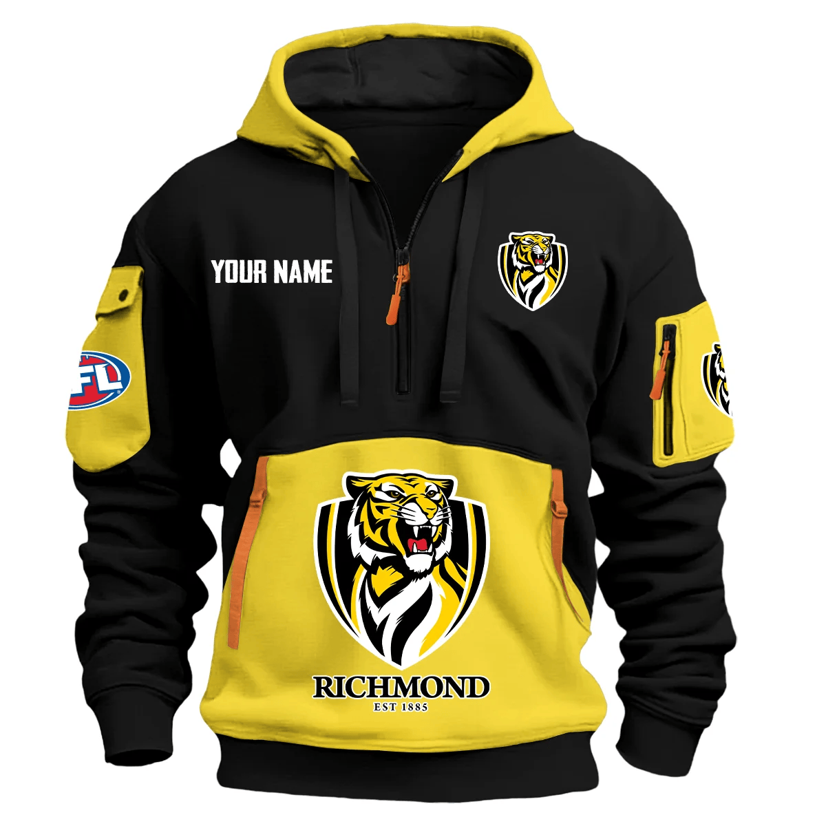 Richmond Tigers Australian Football League Exclusive Logo Hoodie Half Zipper Style 1