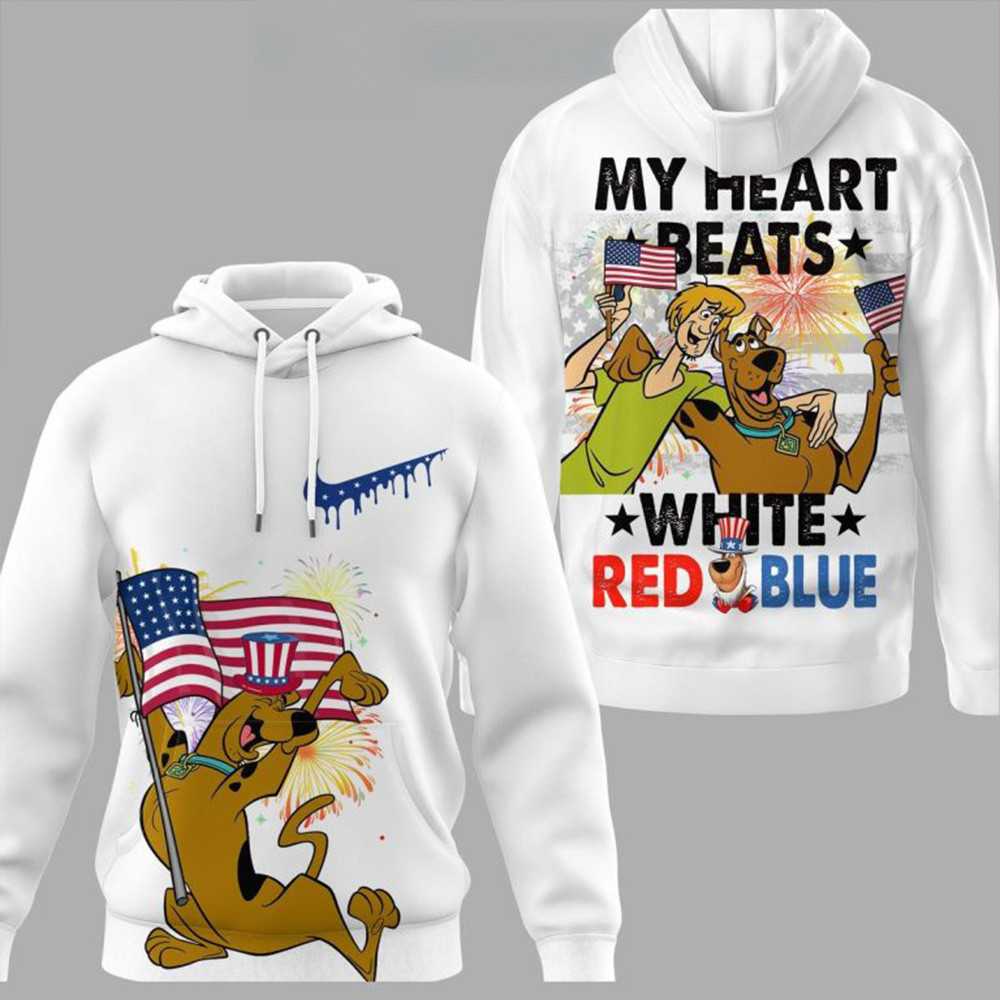 Scooby Doo USA My Heart Beats White Red Blue Hoodie Scooby Doo Merch Fathers Day Gifts For Dad