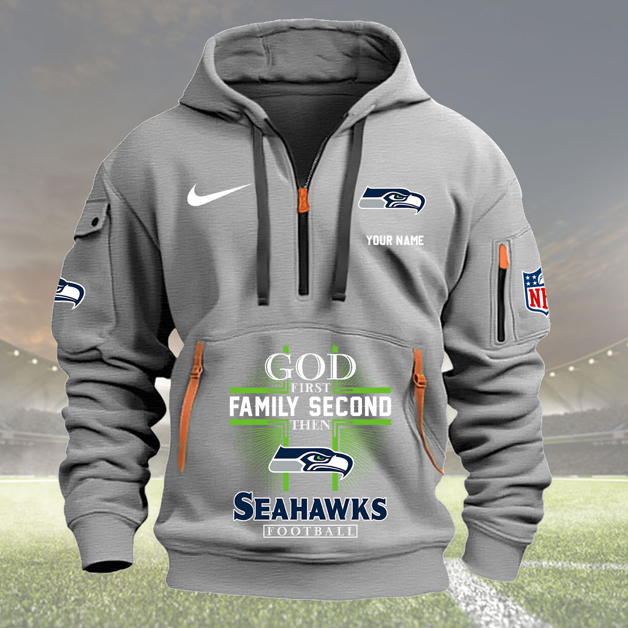 Seattle Seahawks God Family Second Custom Quarter Zip Hoodie New Season 2025 Collection
