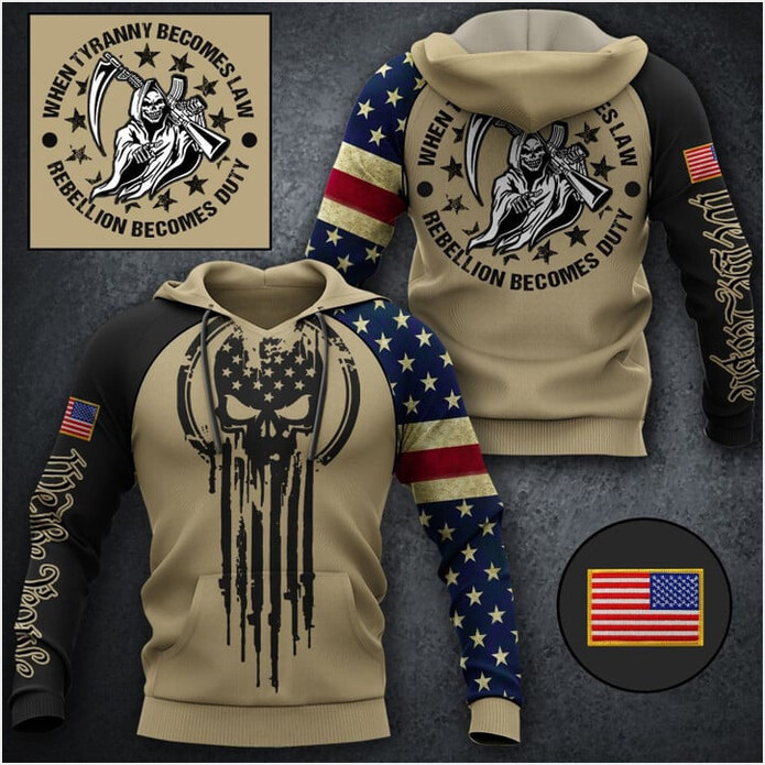 Skull When Tyranny Becomes Law Hoodie We The People American Flag Apparel Patriots Gift Ideas