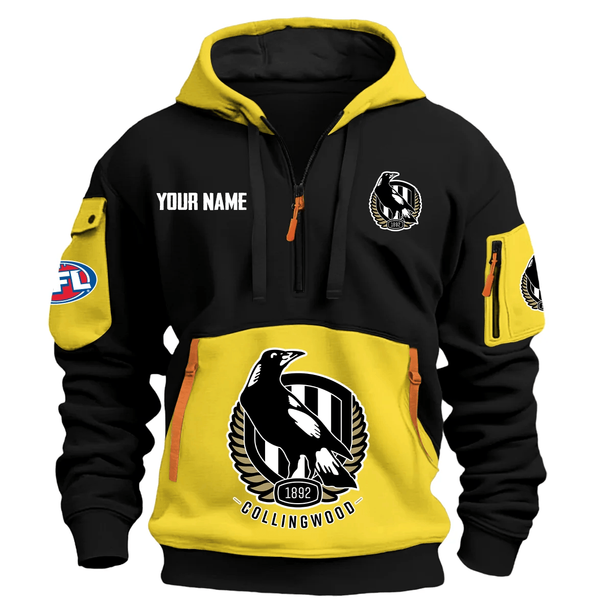 Collingwood Magpies Australian Football League Exclusive Logo Hoodie Half Zipper Yellow