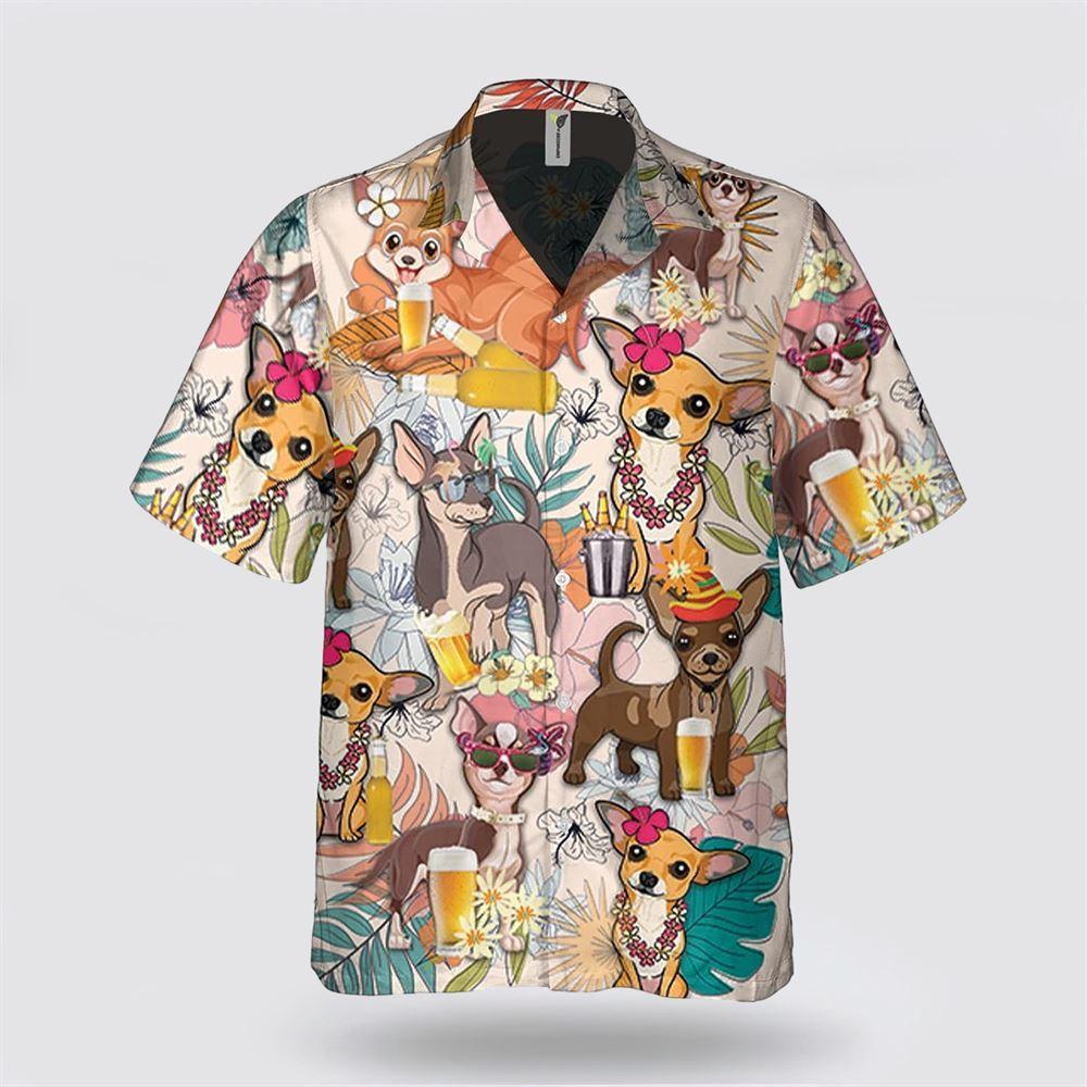 Chihuahua Dog With Beer Tropic Pattern Hawaiian Shirt Gift For Dog Lover