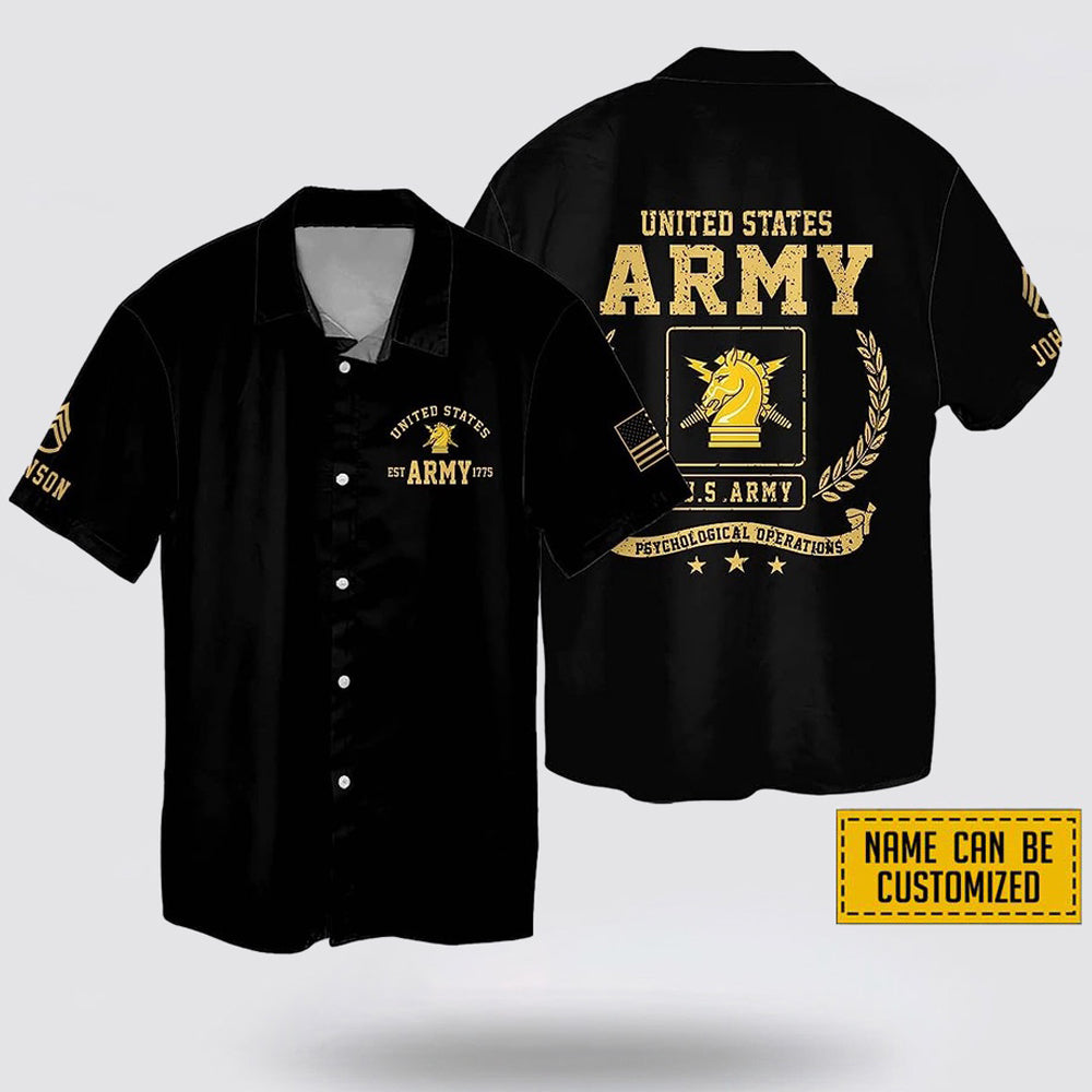 Custom Name Rank US Army Psychological Operations EST Army 1775 Hawaiin Shirt Beachwear Gift For Military Personnel