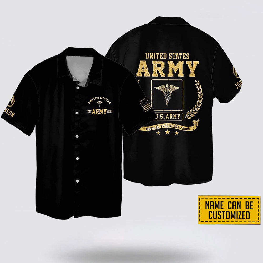 Custom Name Rank US Army Medical Specialist Corps EST Army 1775 Hawaiin Shirt Beachwear Gift For Military Personnel