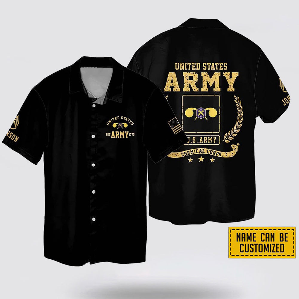 Custom Name Rank US Army Chemical Corps EST Army 1775 Hawaiin Shirt Beachwear Gift For Military Personnel